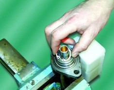 5. Разбираем главный цилиндр. Для этого зажимаем его в тисках и, если резиновый уплотнитель остался на цилиндре, снимаем его.