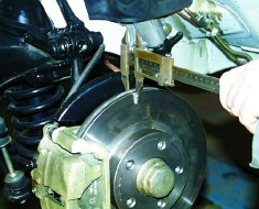 Для проверки состояния рабочих поверхностей тормозной диск с автомобиля снимать не нужно. Проверка подразумевает следующие действия: