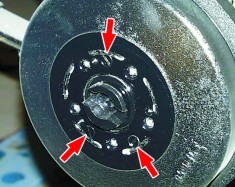 4. Откручиваем три крепежных винта и, если необходимо, снимаем тормозной барабан при помощи отвертки.