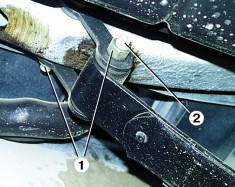 1. Очищаем от грязи рессору, а проушины рессоры — от ржавчины.