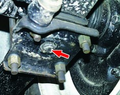 2. Разгружаем рессору и под задний мост устанавливаем упор.