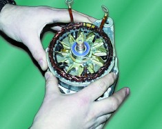 10. Со стороны привода из крышки извлекаем статор с обмоткой.