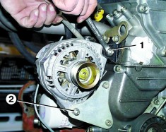 5. Ослабив болт 2, вынимаем болт №1. Теперь генератор можно снять.